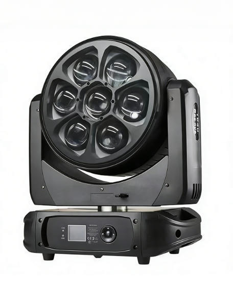 Sahne aydınlatma uygulamaları için gelişmiş zoom yetenekleri ve kapsamlı kontrol seçenekleri ile 7 adet yüksek güçlü RGBW LED'e sahip profesyonel sınıf LED yıkama hareketli kafa ışığı.